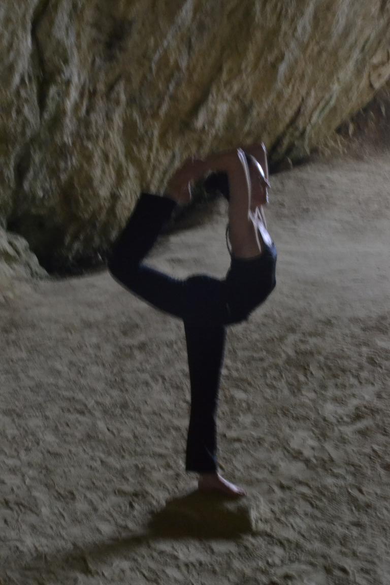 While inside of the cave, I had two clear reactions.  One of these was an intense feeling on the left side of my face feeling frozen; as if  the muscles were gripping. And the other reaction was of a steady stream of air coming out of the left nostril; as if it had no end.  After sitting for the half-hour time slot, I felt the ‘impulse’ to do the dancer pose and a few other postures. This is normally a yoga posture I do not assume immediately, but take time to warm up into. I took the picture using my self-timer, which only allows a few seconds from the time taken to set-up the camera to getting into the position or in this case my posture.